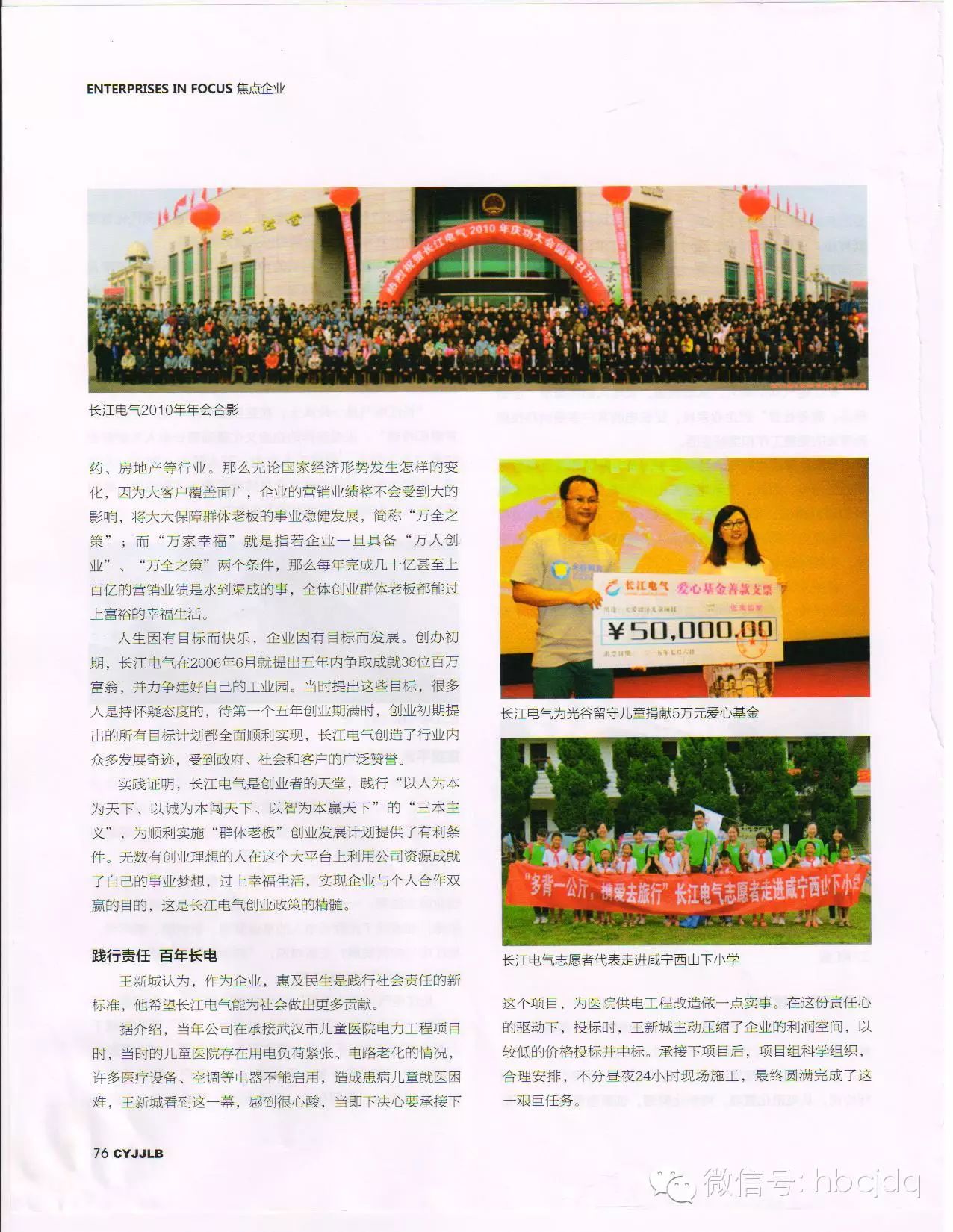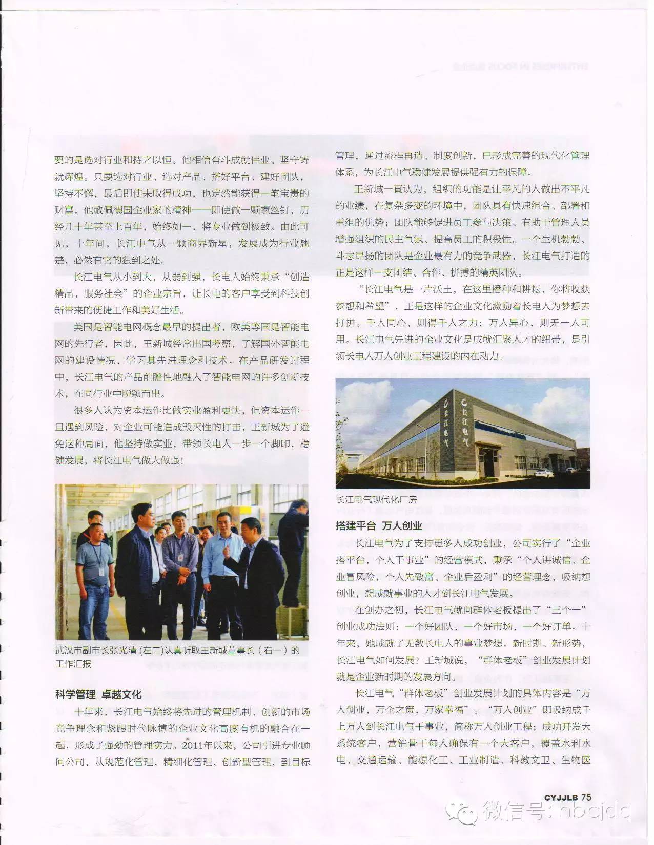 长江电气董事长王新城接受《创业家俱乐部》杂志专访