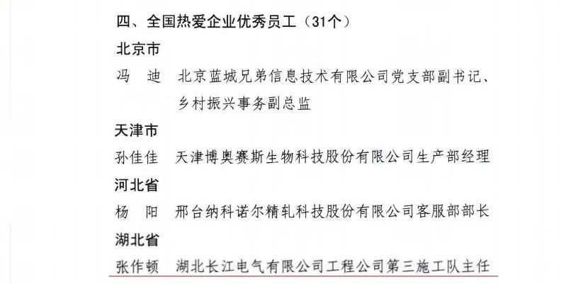 两个“唯一”!长江电气董事长王新城荣获湖北唯一“全国关爱员工优秀民营企业家”称号,张作顿荣获湖北唯一“全国热爱企业优秀员工”称号