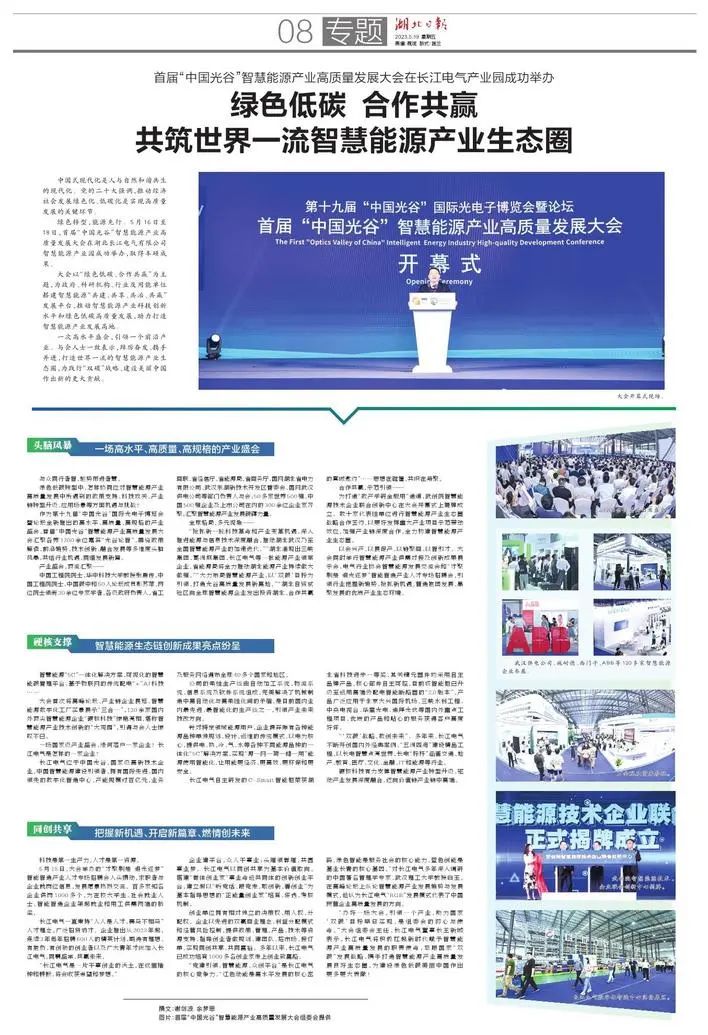 办好一场大会,引领一个产业|《湖北日报》专题报道首届“中国光谷”智慧能源产业高质量发展大会成功举办