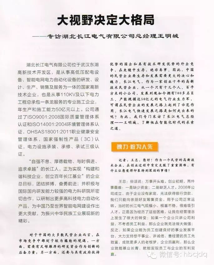 长江电气总经理王明城接受武汉枣阳商会专访——大视野决定大格局