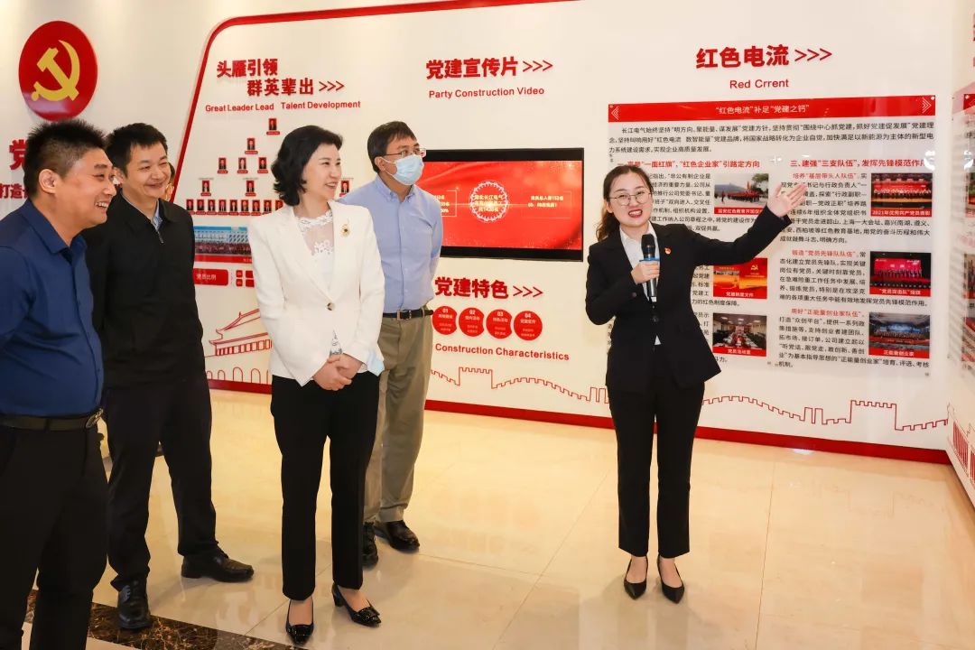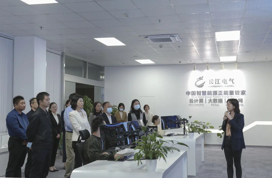 在长江电气,刘洁一行首先参观了“中国智慧能源正能量管家”星空电子展厅、智慧能源管理运营中心,随后深入智能生产车间、数字化智造中心一线,了解企业党建阵地建设及生产经营等情况。