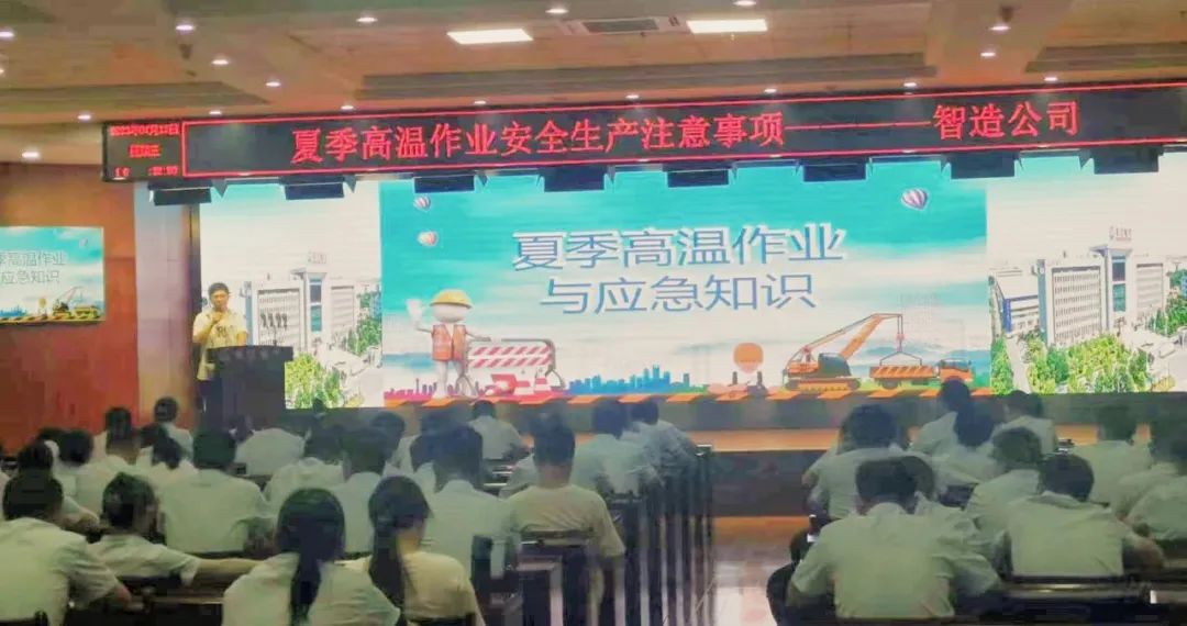 为降低高温天气作业对职工身体健康的危害,有效预防中暑事件,切实维护职工劳动健康权益,近日,长江电气智造公司组织开展“2023年夏季高温作业须知”安全宣讲会。